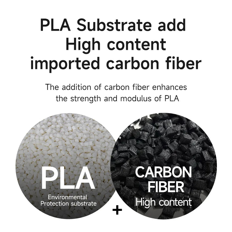【Carbon Fiber Filled PLA】: eSUN ePLA-CF filament adds the carbon fiber to enhance the strength and modulus of PLA. Based on PLA, it adds organic infiltrated chopped carbon fiber to provide better performance and higher bending modulus.